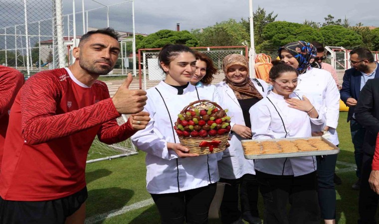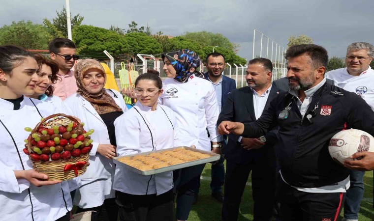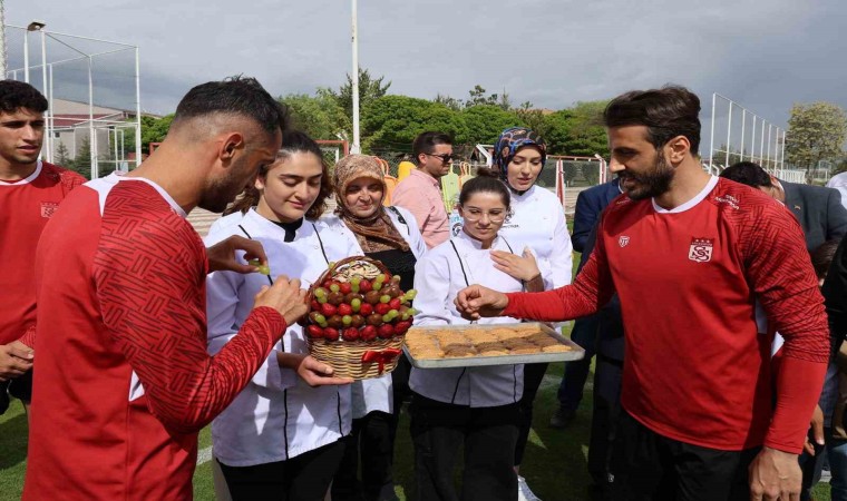 Sivasspor’un, Vali Lütfullah Bilgin Sivasspor Tesisleri’nde yaptığı antrenmanı ziyaret eden aşçılar, Teknik Direktör Bülent Uygun ve futbolcularla sohbet ederek, kırmızı-beyazlı takıma Kayserispor maçında başarı dileklerini iletip, sporculara yöresel tatlı ikram etti.