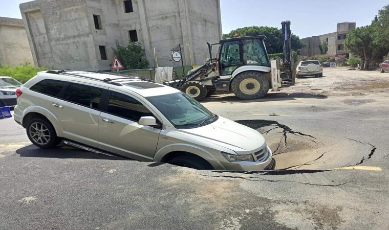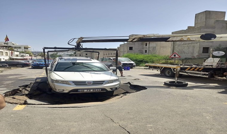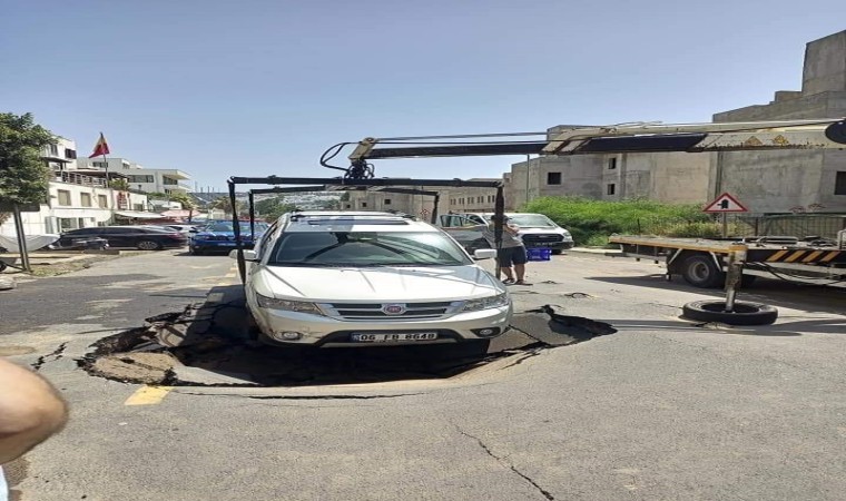 Bodrum’un içme ve kullanma suyunun sağlandığı isale hattı yine patladı. Oluşan büyük çukura ise bir araç düştü.