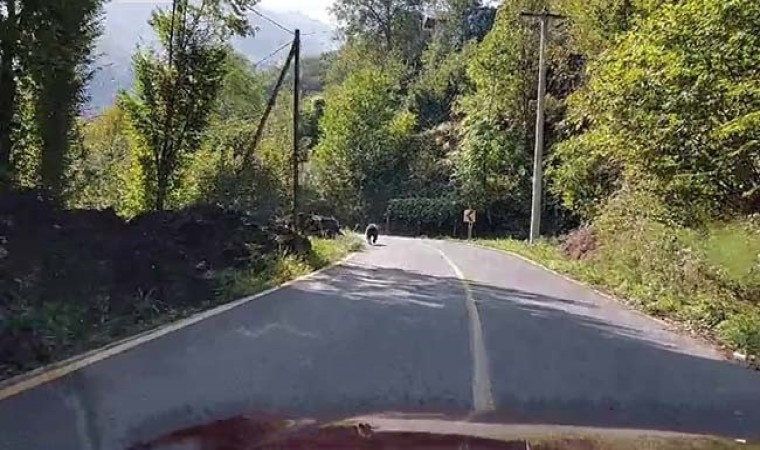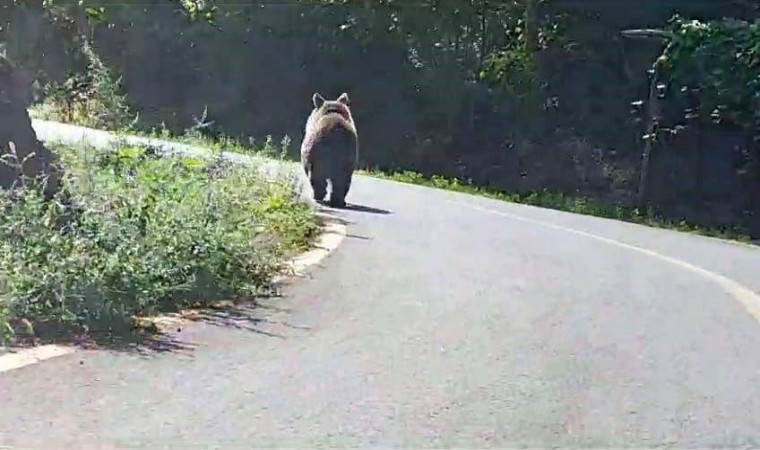 Aksu Mahallesi yolunda seyahat eden vatandaşların güzergahında yola inen boz ayı görüntülendi. Aracın önünde bir süre koşan boz ayı daha sonra yoldan çıkarak ormanlık araziye girdi. Ayının, aracın önünde koştuğu anlar ise cep telefonu kamerasıyla görüntülendi.