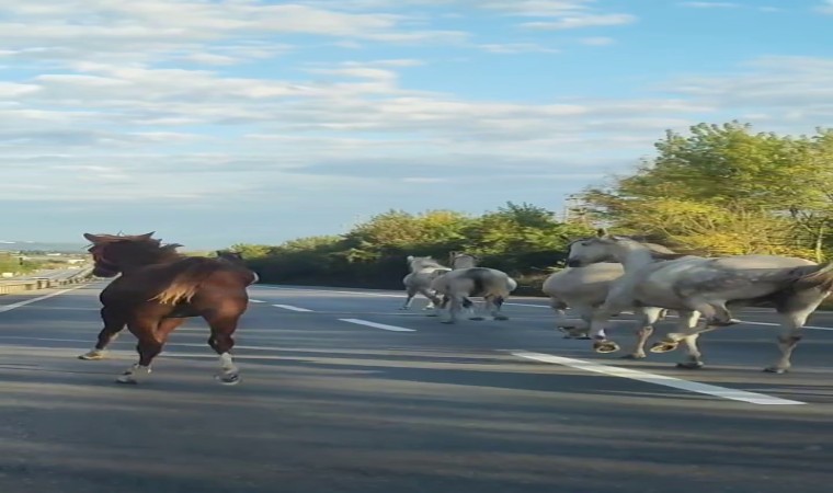 Sakarya ve Kocaeli kesiminde D-100 kara yoluna çıkan atlar dörtnala koştu. Görenleri şaşkına çeviren anlar saniye saniye cep telefonu kamerasıyla kaydedildi.