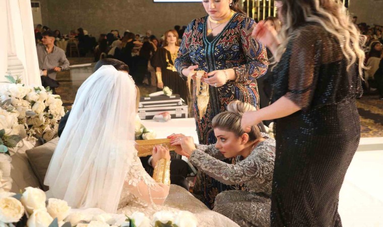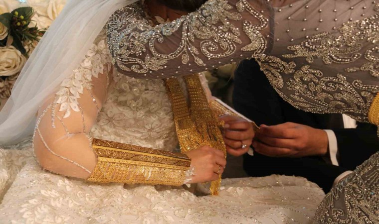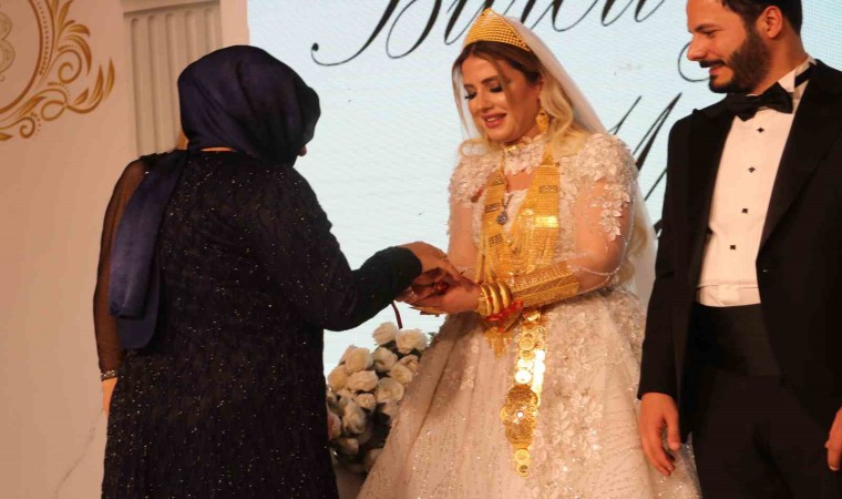 Nikah merasiminin ardından takı töreni başladı. Yaklaşık 1 saat süren takı töreninde geline 8 kilogram ağırlığında bilezik, taç, kemer, gerdanlık, kolye gibi takılar takıldı. Geline altın ve para takmayanlar ise kapıda kurulan ve başında korumaların olduğu sandığa attı. Gecenin sonunda geline takılan takıların haricinde sandık ile valizden 6 milyon lira ile yüklü miktarda döviz ve cumhuriyet altını çıktı.