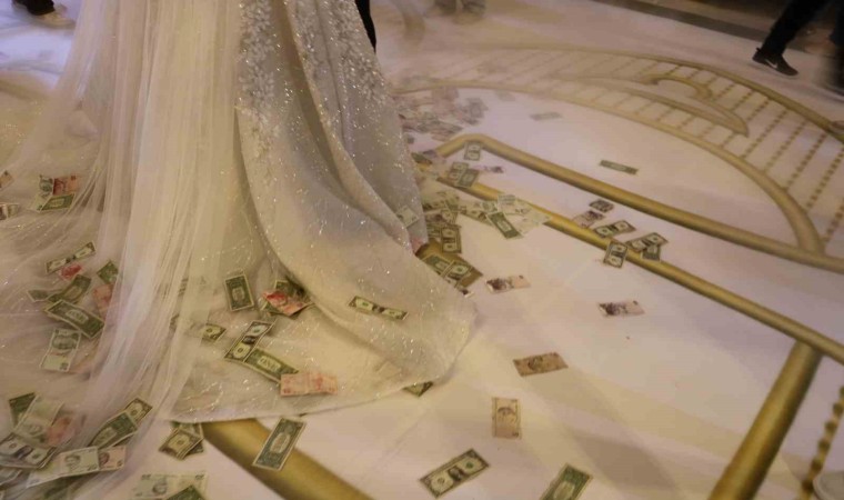 Şanlıurfa’da gerçekleştirilen aşiret düğününde geline 8 kilo altın takan davetliler, milyonlarca lirayı da havaya saçtı.