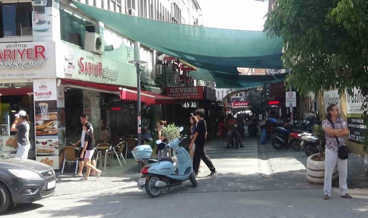 Balıkesir’in Edremit ilçesinde son günlerde yaşanan çöl sıcaklıkları nedeniyle sıcaklıklar mevsim normallerinin üzerine çıkınca sıcaktan bunalan esnaf çarşıda bir sokağın üzerine serinlemek için zeytin brandaları ile kapattılar.