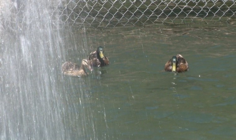 Hava sıcaklığının 40 dereceyi bulduğu başkent Ankara’da serinlemek isteyen vatandaşların uğrak adreslerinden birisi de Kuğulu Park oldu.