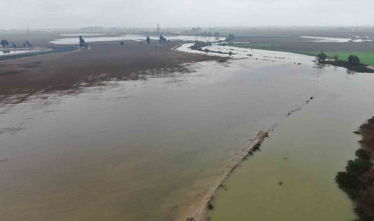 Hatay’da etkili olan yağışla birlikte Asi Nehri taştı, tarım arazileri su altında kaldı.