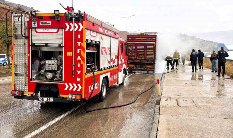Tokat çevreyolunda sabah saatlerinde, Turhal istikametine seyir halindeki 05 ABP 430 plakalı tırın dorsesinde yangın çıktı. İddiaya göre, tırın lastiklerinden yükselen duman kısa sürede alevlere dönüştü. Durumu fark eden sürücü, aracı yol kenarına çekerek 112 Acil Çağrı Merkezi’ne haber verdi. Olay yerine ulaşan itfaiye ekipleri, yangına müdahale ederek alevlerin büyümesini engelledi. Herhangi bir can kaybı ya da yaralanmanın yaşanmadığı olayla ilgili inceleme başlatıldı. Yangının fazla yük nedeniyle lastiklerin aşırı ısınmasından kaynaklanmış olabileceği tahmin ediliyor.