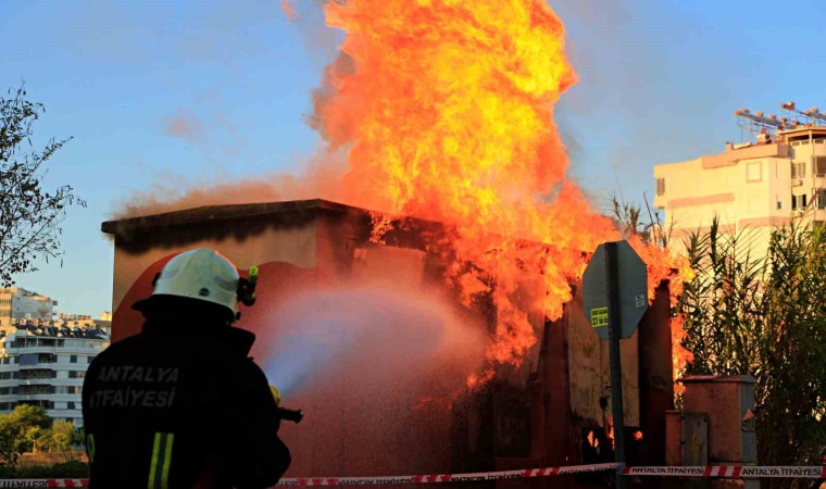 İhbar üzerine olay yerine gelen Antalya Büyükşehir Belediyesi’ne bağlı itfaiye ekibi trafoda akım olması nedeniyle müdahale edemedi. Bunun üzerine bölgeye elektrik dağıtım şirketi ekibi istendi. Ekipler aradan geçen zamanda alevlerin yükselmesi nedeniyle akımı kesemedi. Bu sırada trafonun birkaç metre yakınında bulunan ve içlerinde mutfak tüpü bulunan iki kamyonet dikkati çekti.