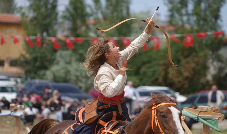 Kırıkkale’de renkli görüntülerin yaşandığı KALEFEST etkinliklerinde yöresel kıyafetleriyle at üzerinde kılıç kullanıp attıkları oklarla hedefleri vuran kadın ve erkek sporcular, vatandaşlara eğlenceli anlar yaşattı.