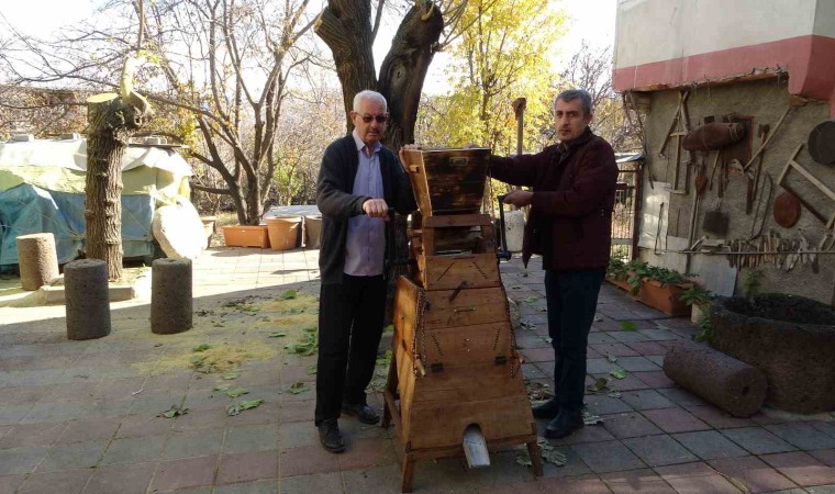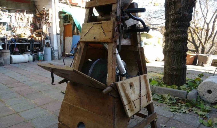 Malatya’nın Arapgir ilçesinde yaşayan antika tutkunu Asım Külah, evinde sergilediği binlerce eşyadan biri olan asırlık ahşap bulgur makinesine gözü gibi bakıyor.