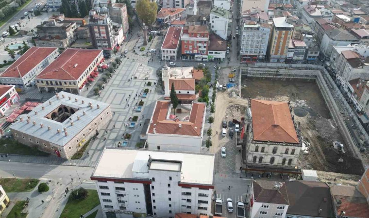 Samsun’da ticaretin en hareketli olduğu lokasyonların başında gelen Saathane Meydanı’nda Büyükşehir Belediyesi tarafından yürütülen büyük dönüşüm projesi hız kesmeden devam ediyor. Bölgedeki tarihi dokunun ön plana çıkarılmasını hedefleyen Büyükşehir Belediyesi, projeyi hazırlarken de tarihi kaynakları referans aldı. Arşivler taranarak 1 asır önce çekilen fotoğraflarda yer alan çarşının bulunduğu alana mevcut tarihi dokuya uygun hazırlanan yeni Ticaret Merkezi Projesi’nin inşası devam ediyor. Büyükşehir Belediyesi’nin, 5 katlı belediye hizmet binasının yıkımının ardından yerine yaptığı Ticaret Merkezi inşaatında yüzde 20 fiziki gerçekleşmeye ulaşıldı. Tarihi ve turistik bir çarşı olacak Ticaret Merkezi Projesi’nde 2 katlı 19 mağaza, 5 restoran ve 206 araçlık otopark bulunacağı ifade edildi. Uygulanan proje ile bölgenin asırlık dokusunun, ticari kültürünün yapılan dokunuşlarla yaşatılıp gelecek kuşaklara korunarak aktarılması hedefleniyor.