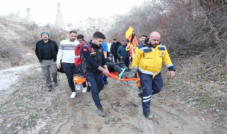 Kapadokya bölgesini gezerken peribacaları arasında düşerek yaralanan turist 2 saatlik çalışma ile kurtarıldı.