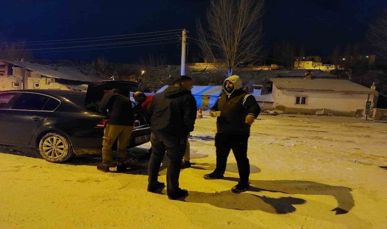Aşkale’de yoğun kar yağışı nedeniyle ulaşıma kapanan yolda sürücü ve yolculara çorba ikram edildi.