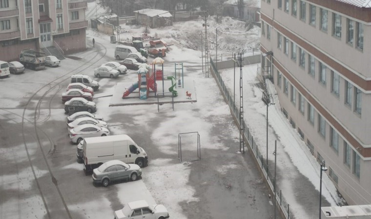 Erzurum’un Aşkale ilçesi güne kar yağışı ile başladı.