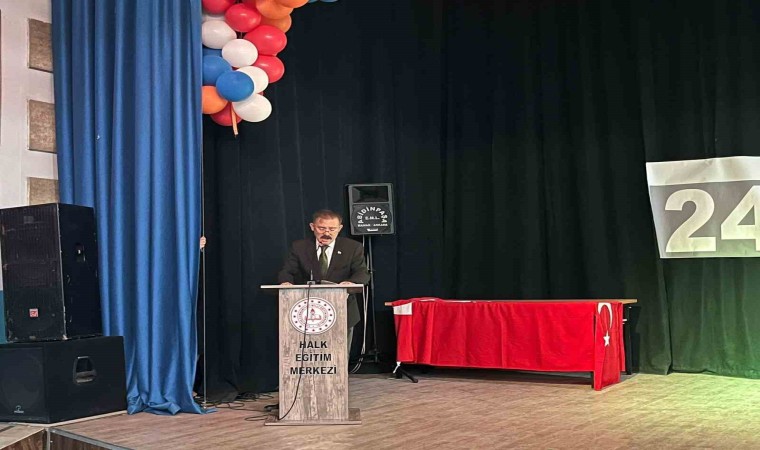 Kutlamalar ilçe Halk Eğitim Müdürlüğü konferans salonunda devam etti, törene ilçe kaymakamı Emre Oğuztürk ve ilçe protokolü katılım sağladı.