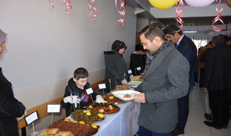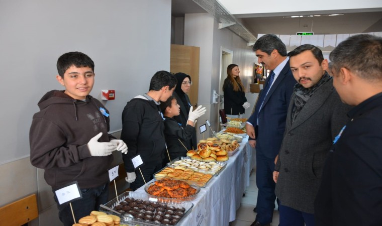 Hayır çarşısında özel eğitim sınıfı öğrencilerinin velileri ve okul öğretmenleri tarafından hazırlanan bir birinden lezzetli yiyecekler misafirlere ikram edildi.