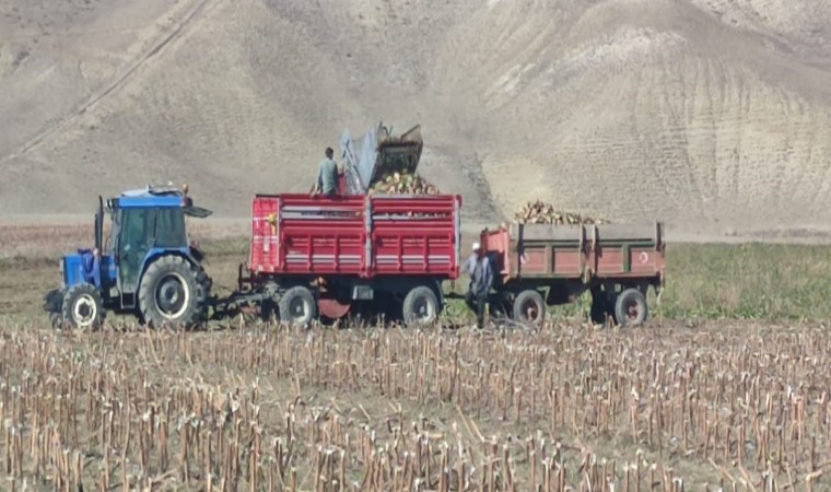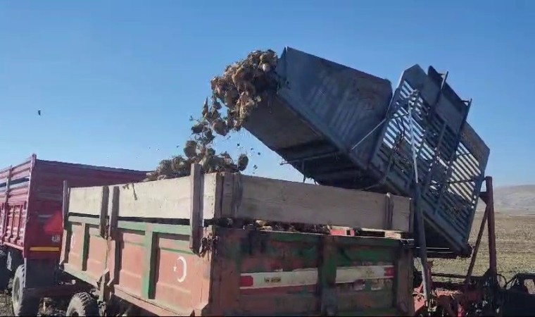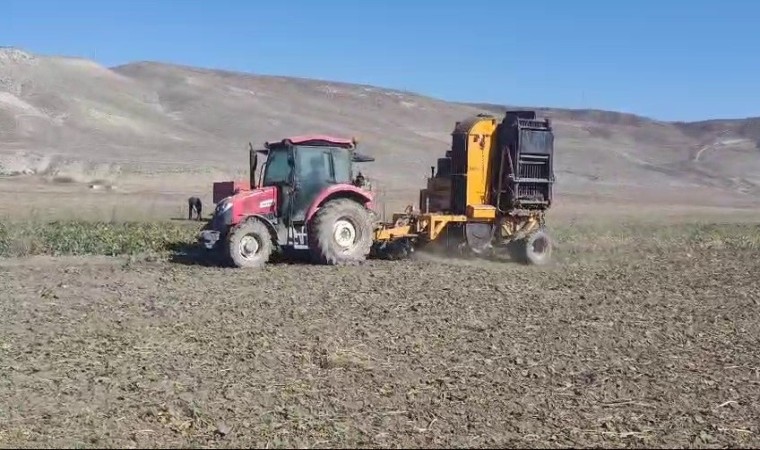 Bahar aylarında ekimi yapılan ve yılın 11. ayında hasadı başlayan şeker pancarı çiftçiler tarafından topraktan çıkarılıyor.