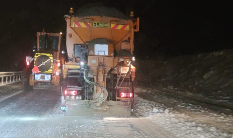 Erzurum’un Aşkale ilçesinde akşam saatlerinde başlayan kar yağışı, ilerleyen saatlerde etkisini artırdı. Erzurum-Erzincan ve Erzurum-Bayburt karayolu kavşağında bulunan ilçenin önemli noktalarından olan Tepebaşı ve Kopdağı geçitlerinde kar temizliği yapıldı. Aşkale 121. Karayolları ekipleri, ilçeye bağlı geçitler başta olmak üzere yol güzergahlarında kar temizliği ve tuzlama çalışmaları yaparak trafik akışını sağladı. Çalışmalar esnasında trafik akışı yavaş seyretti. Karayolları ekiplerinin hummalı çalışmaları yağan kar ile birlikte devam etti.