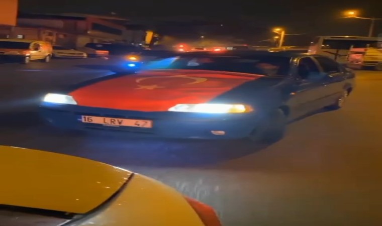 Bursa’da arkadaşının askerlik eğlencesine katılan sürücü drift atarak kilometrelerce ilerledi. O anlar anbean kameraya yansıdı.