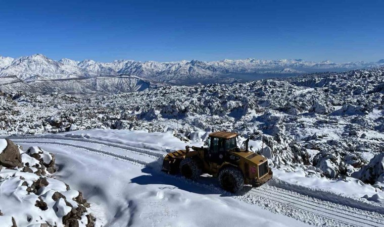 Hakkari’deki askeri üs bölge yollarında karla mücadele çalışmaları sürüyor.