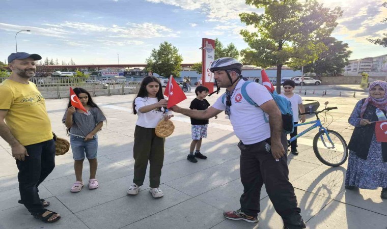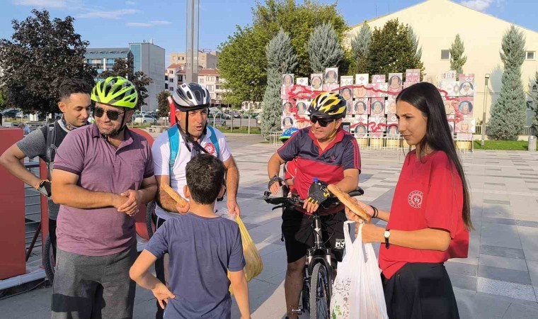 30 Ağustos Zafer Bayramı anısına yapılan etkinlikte bir grup bisiklet tutkunu, askerlerin cephedeki zor şartlarını yeni nesle anlatmak adına şehir meydanında halka kuru ekmek dağıttı. Bisiklet tutkunları tarafından düzenlenen etkinlikte geçmişle gelecek arasında köprü kurulması amaçlandı.