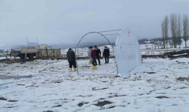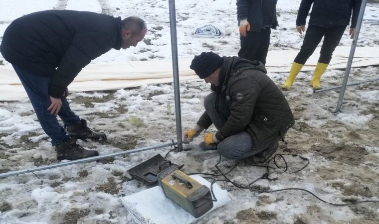 Örenköy de Ahmet Çakıcı’ya ait ağılda 15 Şubat’ta meydana gelen ve yaklaşık 150 küçükbaş hayvanın bulunduğu çadır ağılın göçmesi ile ilgili İl Müdürlüğü koordinesinde çalışma başlatıldı. Tarım ve Orman Bakanlığı tarafından temin edilen çadır ağıl yetiştiricinin müracaatının ertesi günü kurulumu yapılarak mağduriyeti giderildi.