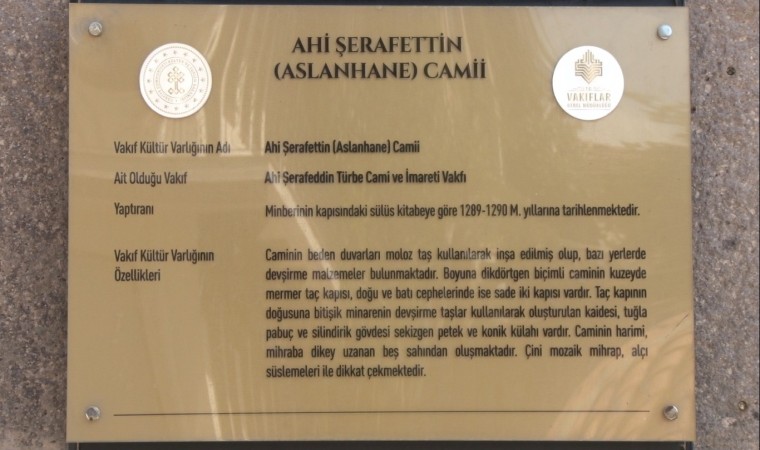Ulus’ta yer alan ve yapımı 13. yüzyıla dayanan ahşap malzeme ve desteklerden oluşan cami, listeye Gordion Antik Kenti’nin ardından Ankara’dan giren ikinci kültür hazinesi oldu. Ankara Kalesi’nin güneyindeki Ahi Şerefeddin veya halk arasında bilinen adıyla Aslanhane Camisi, Anadolu Selçuklu döneminin içi ahşap direkli camileri arasında yer alıyor.
