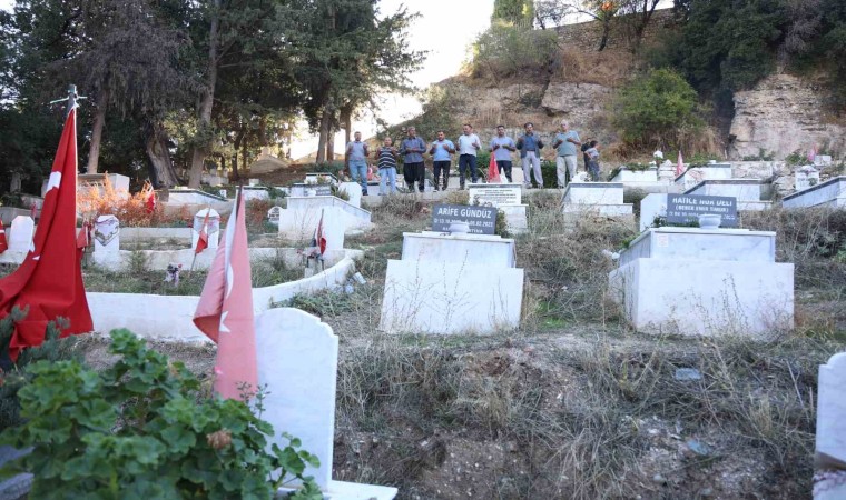 Asrın felaketinde vefat eden 400’e insanı defnetmenin 18 gün sürdüğünü dile getiren Muhtar Sait Döş, “Küçük kıyameti yaşadık. Deprem öncesi nüfusumuz 800 kişiydi, maalesef depremde 500 civarı bir şehidimiz var. Hepsi mahallemizdeydi ama Antakya’da ikamet ediyorlardı. Burada bize düşen onları defnetmek oldu. Enkazdan çıkarıp buralara gömmek 18 gün sürdü. Mezarlığımızda 400’e yakın yatan şehidimiz var. Antakya’da mezarlıklarda sahipsiz gömülen 100 şehidimiz daha var. Depremde bazı aileler komple yok oldular. Biz her mezarlığa geldiğimizde depremi tekrar yaşıyoruz. Bu akıllardan çıkacak bir şey değil” dedi.