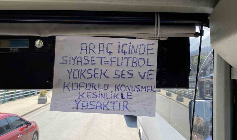 Zonguldak’ta Özel Halk Otobüsünde şoförlük yapan 53 yaşındaki evli ve 3 çocuk babası Haşim Korkmaz, yolcularının ve kendisinin keyifli bir yolculuk yapması için araç içerisine, ‘Araç içinde siyaset,futbol, yüksek ses ve küfürlü konuşmak yasaktır’ yazısını yazdı.