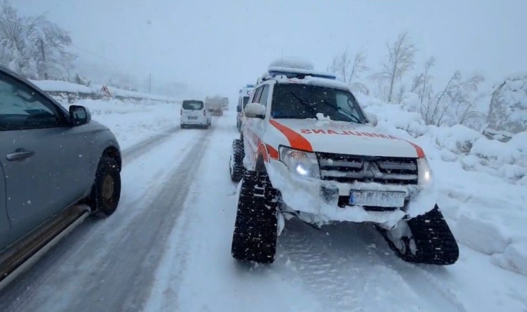 Hakkari ve ilçelerinde etkili olan kar yağışı hayatı olumsuz etkilerken, yağış nedeniyle kent genelinde 100 köy ve mezra yolu ulaşıma kapandı. İl Özel İdaresi karla mücadele ekipleri, köy yollarını açma çalışması sürdürürken yolu kapalı olan yerleşim yerlerinde de hastalanan vatandaşlar paletli ambulanslarla hastaneye ulaştırılıyor. Yüksekova ilçesine 27 kilometre mesafede bulunan Sarıtaş köyüne bağlı Yeşimli mezrasında ikamet eden 9 yaşındaki Taha Yasin Kaplan, astım nedeniyle nefes darlığı yaşamaya başladı. Kaplan’ın ailesi 112 Acil Çağrı Merkezi’ni arayıp ambulans talep etti.