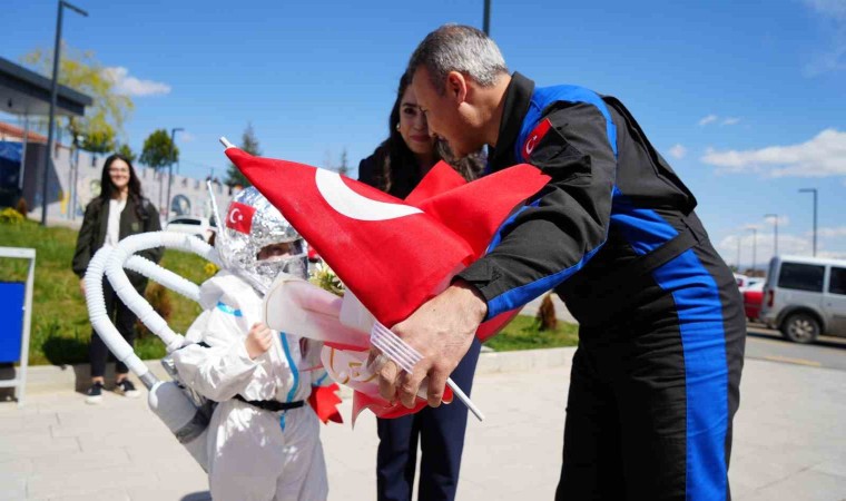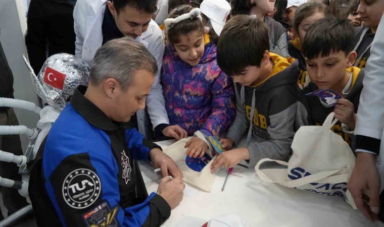 Kırıkkale Belediyesi’ne ait Bilim Merkezi’ni ziyaret eden Türkiye’nin ilk astronotu Alper Gezeravcı’yı, astronot kıyafetli 5 yaşındaki Mira elinde Türk bayrağıyla karşıladı. Çok sayıda öğrenci, Gezeravcı’dan imza alabilmek için birbiriyle yarıştı.