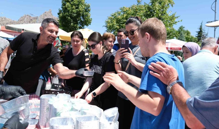Sivrihisar Belediyesi, Muharrem ayı münasebetiyle dev kazanlarda pişirilerek hazırlanan aşureleri vatandaşlara ikram etti.