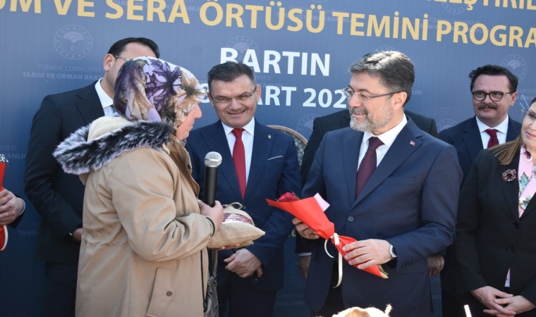 Bartın Tarım İl Müdürlüğü yerleşkesinde Tarım Arazilerinin Kullanımının Etkinleştirilmesi (TAKE) Projesi Tohum ve Sera Örtüsü Temini Programı çerçevesinde aralarında kadınların da bulunduğu 10 çiftçiye ata tohumu ve sera örtüsü dağıtıldı. Programa katılan Tarım ve Orman Bakanı İbrahim Yumaklı, ata tohumu kullanımın yasaklandığı iddialarına cevap verdi. Sertifakalı tohum kullanımı konusundaki ısrarlı tutumun yanlış anlaşıldığını belirten Bakan Yumaklı, ’’Birçok konuda olduğu gibi gıda arz güvenliğini sağlamak da birinci önceliğimiz olmak durumunda. Çünkü eğer tohumunuz yoksa siz üretimi başlatamazsınız. Savunma sanayiinde, teknolojide ya da diğer sektörlerde olduğu gibi tohumda da istikbalinize dönük taahhütlerinizi yerine getirmek istiyorsanız bağımsız olmak durumundasınız. Türkiye, bu konuda dünyada ilk 10 ülke arasında. Genelde doğru bilinen yanlışlar vardır. Bu da onlardan bir tanesi. Türkiye’de üretilen yerli ve milli tohumlarımız var. Kullanılan tohumların yani yüz birimlik tohumun 97 birimi bu ülkenin topraklarında üretiliyor. Tohumlarla alakalı çok araştırma geliştirme yapan kurumlarımız var. Ama aynı zamanda son dönemde özel sektörün de ciddi bir başarısı var. Tohumlarla ilgili söyleyebileceğimiz diğer önemli şeylerden bir tanesi de bunların sertifikalı tohum olması. Bu konudaki ısrarımız zaman zaman yanlış anlaşılıyor ve ata tohumlarının yasaklandığıyla ilgili zaman zaman tezviratlarda bulunuluyor. Bu doğru değil arkadaşlar’’ dedi.