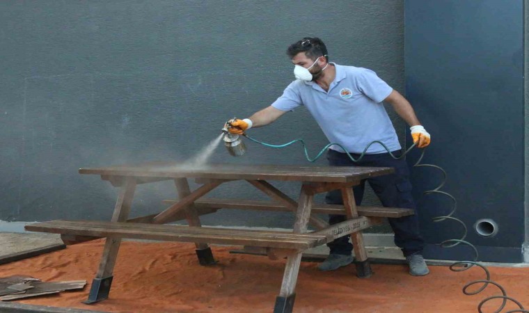 Belediyenin Makine İkmal ve Onarım Müdürlüğü ekipleri, Atakum sınırları içerisindeki okullarda, ihtiyaç doğrultusunda hummalı çalışma yürüttüler. Okul bahçelerinde yer alan bankları ve masaların yıpranmış kısımlarını yenileyen ekipler, zımpara işlemiyle ahşap zeminleri pürüzsüz hale getirdi. Oturma alanlarını ve bahçe donanımlarını özenle onaran ekipler, ardından boyama işlemi gerçekleştirdi.