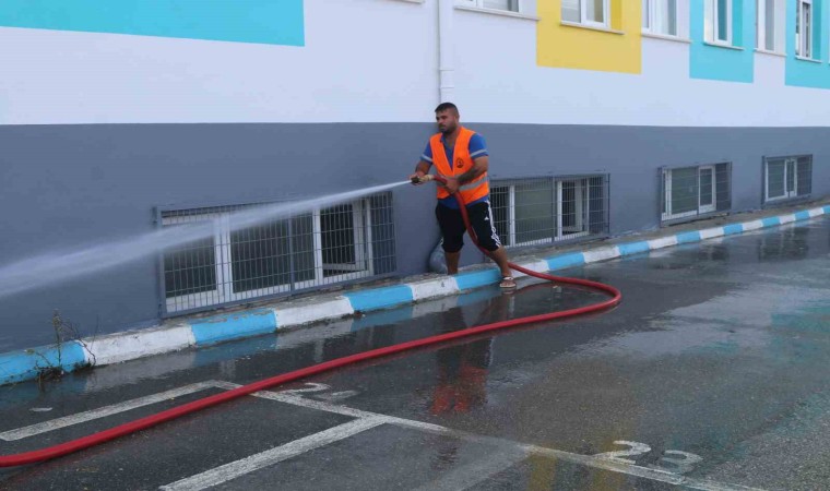 öğretim yılı öncesi kentteki tüm okulları yıkayarak, hijyenik hale getirdi.