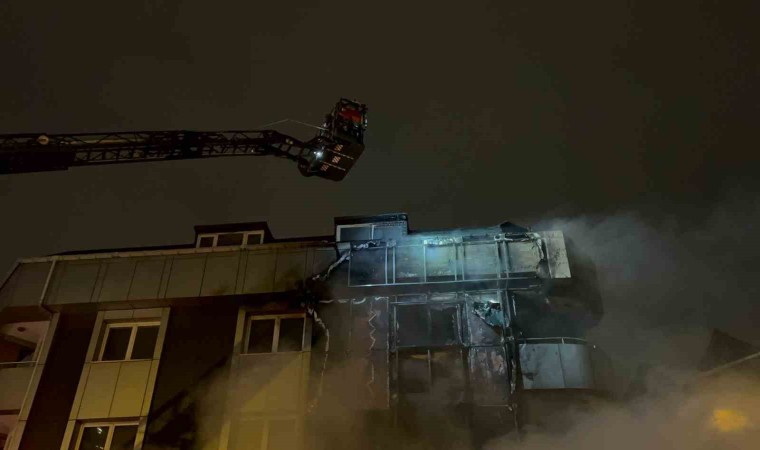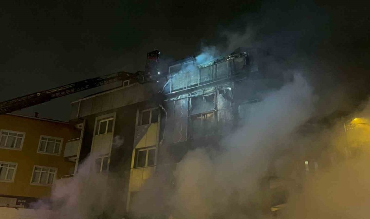 Ataşehir’de metruk durumda olan 4 katlı apartmanın dış cephe kaplaması yandı.