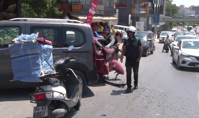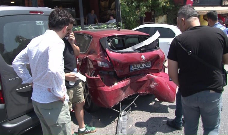 Ataşehir’de ehliyetsiz sürücü seyir halindeyken makas attığı sırada bir pastanenin önündeki 3 araç çarptı. Kazada aracına binmek üzere olan bir kişi araçların çarpmasından son anda kurtuldu.