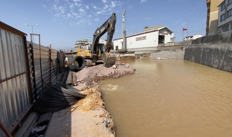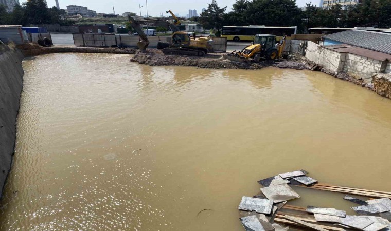Ataşehir’de inşaatın temel açma işlemi yapılırken iş makinesi, su borusunu patlattı. İnşaat alanına su doldu.