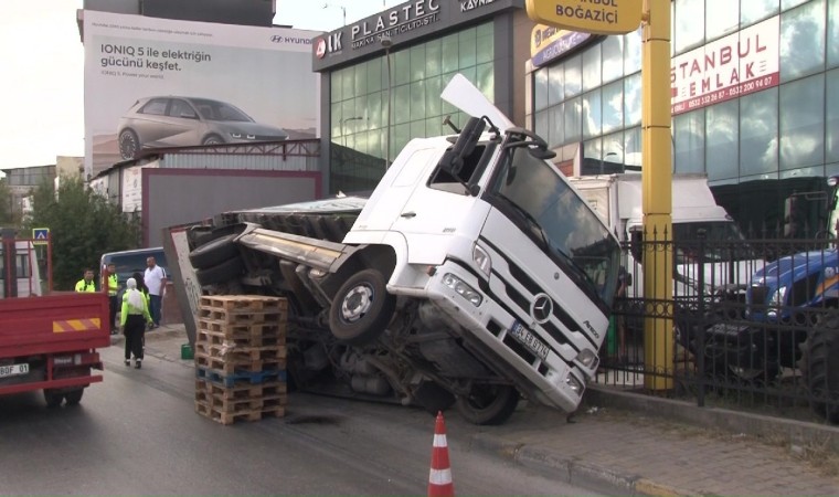 Olay, Ataşehir ilçesi, Ferhatpaşa Mahallesi, Samandıra Caddesi’nde saat 08.00 sıralarında meydana geldi. İddiaya göre, sürücüsünün ismi öğrenilemeyen 34 EB 0774 plakalı meyve yüklü kamyonun sürücüsü, yolda manevra yapan bir araca çarpmamak için direksiyonu kırarak ters yöne girdi. Kontrolden çıkan kamyon yan yattı. Olayda ölen veya yaralanan olmadı. Kamyon şoförü kendi çabalarıyla araçtan çıktı. Çevredeki diğer vatandaşlar tarafından polis ekiplerine haber verildi. Durumun bildirilmesi üzerine olay yerine polis ekipleri sevk edildi. Olay yerine gelen polis ekipleri trafiği kontrollü şekilde ilerletirken, olayla ilgili inceleme başlattı.