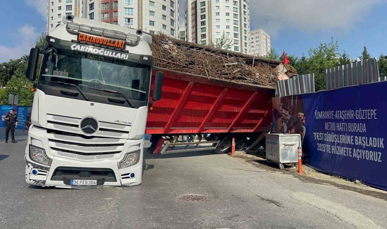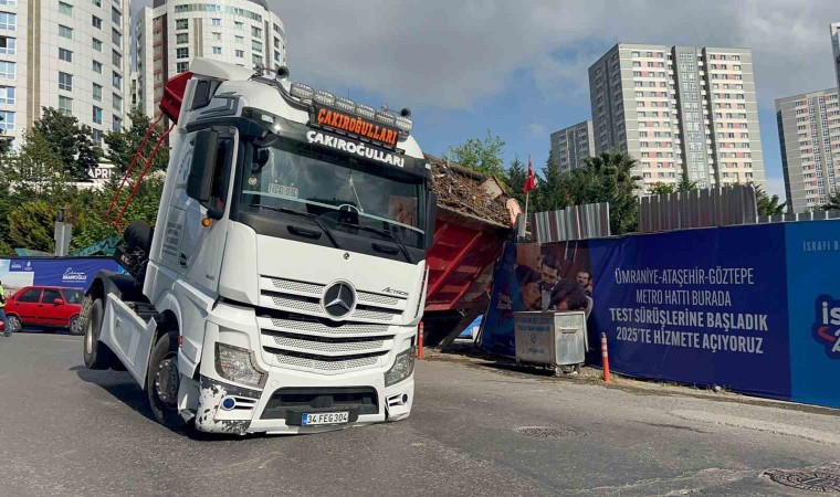 Kaza, Ataşehir Barbaros Mahallesi Ihlamur Bulvarı üzerinde saat 16.30 sıralarında meydana geldi. İddiaya göre, 34 FEG 304 plakalı Mercedes marka tır, metro şantiyesinden çıktığı esnada dorsesi yan yattı. Yan yatan dorsenin şantiye demirlerine çarpması sonucu tır hasar aldı. Meydana gelen kaza sebebiyle Ihlamur Bulvarı trafiğe kapatıldı. Cadde üzerinde ise yoğun araç trafiği oluştu. Tırın çekici yardımıyla kaldırılmasının ardından cadde trafiğe açıldı. Yaşanan kazada herhangi bir yaralanma meydana gelmedi.