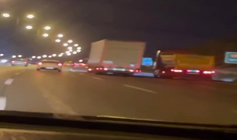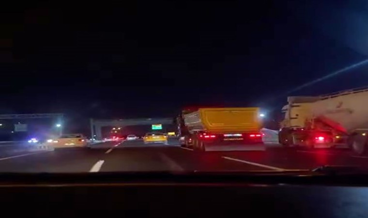 Ataşehir’de TEM otoyolunda gece saatlerinde kaydedilen görüntülerde, ne yoldaki diğer sürücülerin ne de kendi canını hiçe sayan bir hafriyat kamyonu sürücüsü yolda adeta yarışırcasına hızla ilerledi. Hızla ilerleyen kamyonun yoldaki bazı araçları sollayarak yoluna devam ettiği görüldü. Hızla seyreden hafriyat kamyonu yoldaki başka bir sürücü tarafından cep telefonu kamerası ile kaydedildi. Görüntüyü kaydeden sürücünün otomobilindeki kadranın 147 kilometreyi göstermesi ise dikkat çekti.