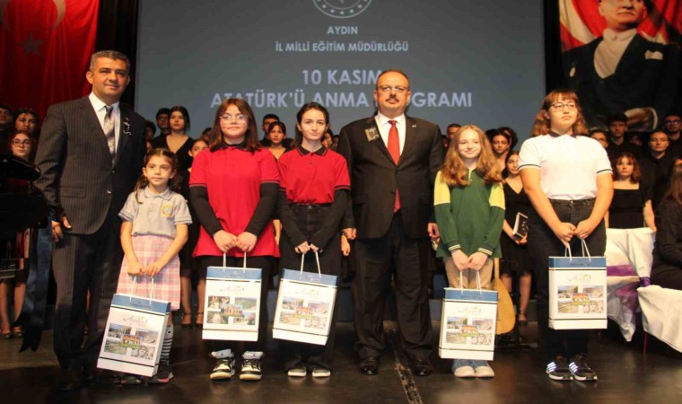 Konuşmaların ardından Aydın Valisi Yakup Canbolat, Aydın İl Milli Eğitim Müdürlüğü tarafından Atatürk’ü Anma ve Anlatma konulu şiir, resim, kompozisyon, mektup ve afiş yarışmalarında dereceye giren öğrencilere teşekkür belgesi ve hediyelerini takdim etti.