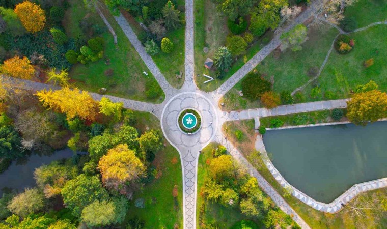 Sarıyer’de bulunan Atatürk Arboretumu sonbaharda doğanın hayran bırakan tonlarıyla ziyaretçilerini ağırlıyor. Bitki çeşitliliği ve mest eden görüntüsüyle dikkat çeken alandaki kartpostallık manzara ise havadan görüntülendi.