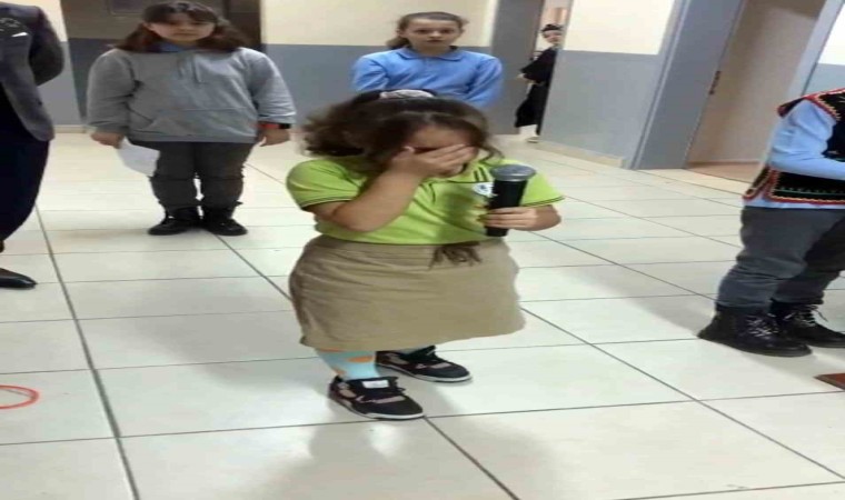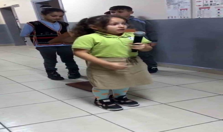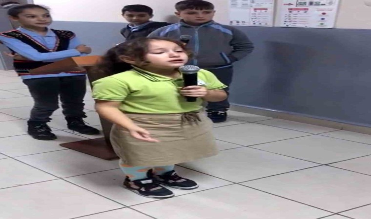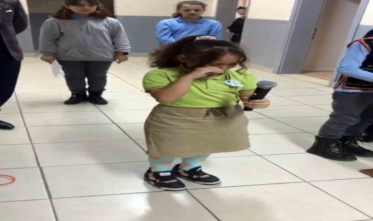 Şiiri gözyaşlarıyla okuyan minik Sümeyye Önal, “Neden ağladığımı sorarsanız, duygulandım ve kalbimizde yaşadığını hissettim. Vatanı kurdu Atatürk, düşmanlardan bizi korudu. Aramızdan gittiğini hissettim ve o yüzden duygulandım” şeklinde konuştu.