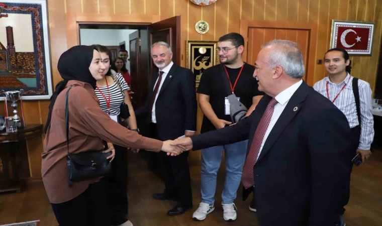 Öğrenci Dekanlığı Dekanı Prof. Dr. Yaşar Totik ve ATAKARMER Müdürü Prof. Dr. Neslihan Kulözü’nün refakat ettiği öğrenciler, Rektör Çomaklı ile bir araya geldi. Atatürk Üniversitesinin böylesine önemli bir organizasyona ev sahipliği yapması ve toplantıya katılan öğrencilerin ziyareti dolayısıyla duyduğu memnuniyeti dile getiren Rektör Çomaklı, konuklarına üniversite hakkında bilgi verdi.