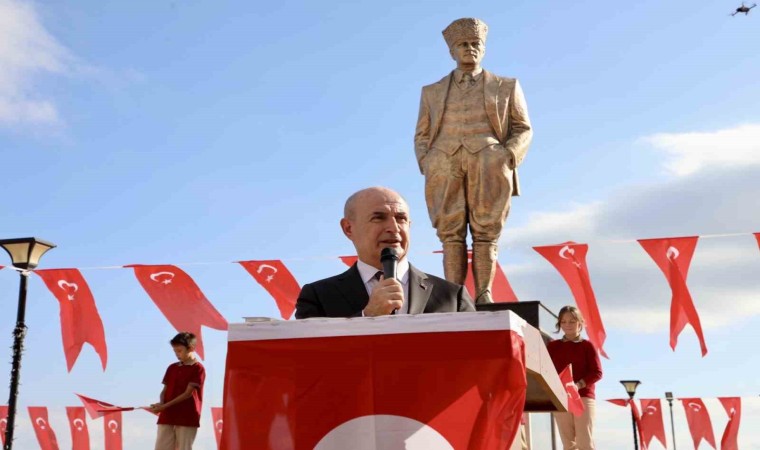 “İğneada’yı ziyaretimizde Tahir Işık Başkanım ile Cumhuriyet Meydanı’nda gezerken Atatürk heykeli ile kaidenin birbirine uyumlu olmadığını ve Atatürk’e çok benzemediğini gördük. Kendisi de ifade etti. Ondan sonra da anıtın değiştirilmesi konusunda karar verdik. Büyükçekmece Belediyesi olarak Gazi Mustafa Kemal Atatürk’ün güzel bir heykelini bu meydana diktik. Ata’mızın Anma Günü. 85’inci ölüm yıl dönümünü anacağız. Bizim için şereftir dedik. Birlikte açılışını yaptık. Ata’mız bizim için o kadar büyük hizmetler yaptı ki bizim de eğer Ata’mızın fikirlerini yaşatma, onun ışığında yürüme görevimizse aynı zamanda onun da yüzünün yeni genç nesiller tarafından unutulmaması için heykellerini dikme gibi bir milli görevimiz var. Onu yerine getirdik. Son derece mutluyum. Çok teşekkür ediyorum Tahir Başkanıma. O bu fırsatı vermeseydi olmayacaktı. ‘’
