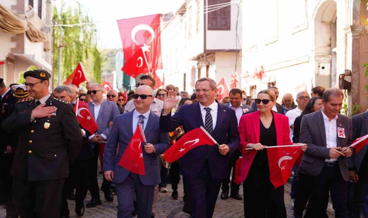 Atatürk’ün ilçeye giriş yaptığı güzergâh üzerinden gerçekleştirilen yürüyüşe; Ayvalık Kaymakamı Hasan Yaman, Ayvalık Belediye Başkanı Mesut Ergin ve eşi Canan Ergin, gaziler ve şehit aileleri, siyasi parti ve sivil toplum örgütlerinin temsilcileriyle öğrenciler katıldı.