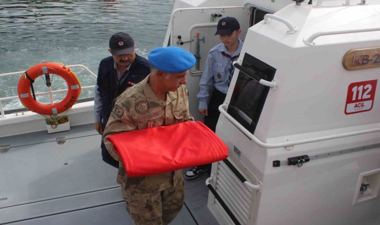 Törende Atatürk’ün Giresun’a gelişini temsilen Gazi tarafından rıhtıma çıkarılan Türk bayrağı, Giresun Valisi Mehmet Fatih Serdengeçti’ye teslim edildi.