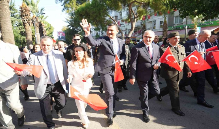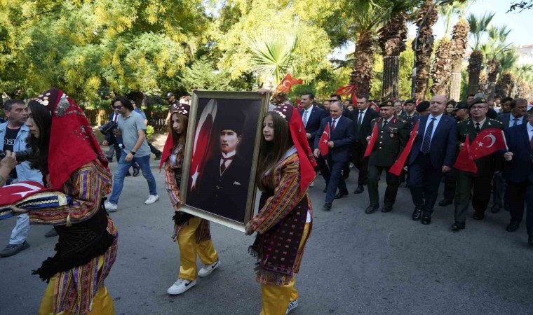 Vali Vahdettin Özkan, Manisa Büyükşehir Belediye Başkanı Ferdi Zeyrek, protokol üyeleri, öğrenci grupları ve vatandaşlar daha sonra bando eşliğinde önde Türk Bayrağı ve Atatürk Posteri ile birlikte Manisa Tren Garı’ndan Cumhuriyet Meydanına kadar kortej yürüyüşü gerçekleştirdi. Öğrenciler Türk bayraklarıyla korteji destekledi. Cumhuriyet Meydanı’nda Atatürk ve Milli Egemenlik Anıtı’na çelenk sunuldu.