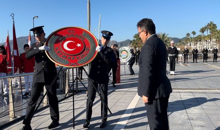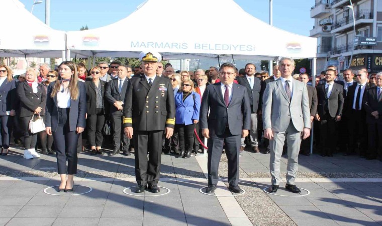Marmaris Atatürk Meydanı’nda sabah 09.50’ de başlayan törene Marmaris Kaymakamı Nurullah Kaya, Aksaz Deniz Üs Komutanı Tuğamiral Neslim Eski, Marmaris İlçe Jandarma Komutanı Yarbay Murat Çam, İlçe Emniyet Müdürü Emre Alay, Cumhuriyet Başsavcı vekili Büşra Demiralp, Marmaris Belediye Başkanı Mehmet Oktay, kamu kurum ve kuruluşları müdürleri, Marmaris’te yaşayan Muharip Gaziler, siyasi parti, oda ve sivil toplum örgütü temsilcileri, okullar katılım sağladı.