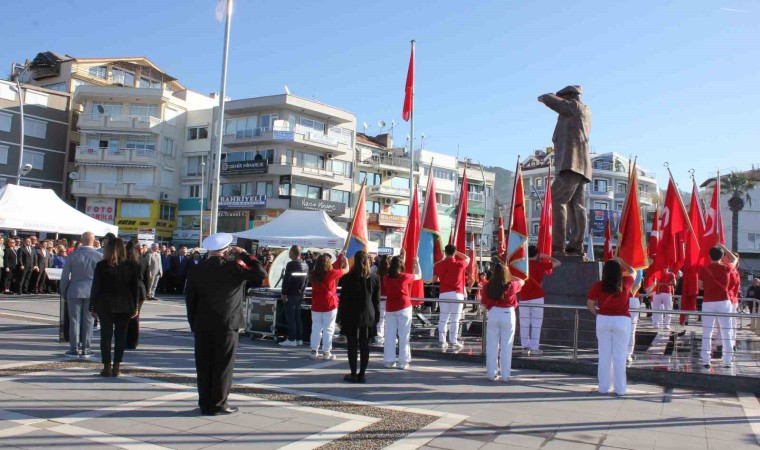 Atatürk büstüne çelenk sunumu ile başlayan anma töreninde Aksaz Deniz Üssü Bandosu’nun eşliğinde saygı duruşunun ardından İstiklal Marşı okundu.